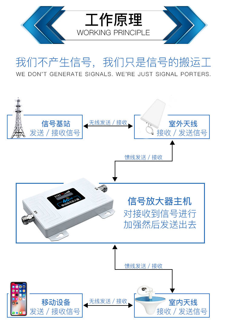 手機信號放大器是專門為了放大信號、解決信號盲區問題而研發的設備。大家都知道手機信號就是通過電磁波的發射、傳播和接收去建立通信關系的。但是由于城市的建設和發展與日俱增,有了許多高層的建筑物,這些建筑物會進行信號的阻隔,在一些比較高大的建筑物背面、 地下室停車場、商場、 餐廳 、娛樂場所、地鐵站場所,都會因為信號被阻隔所以不能用正常使用手機上網或者打電話,因此造成了許多麻煩,但裝了手機信號放大器能夠輕松解決。