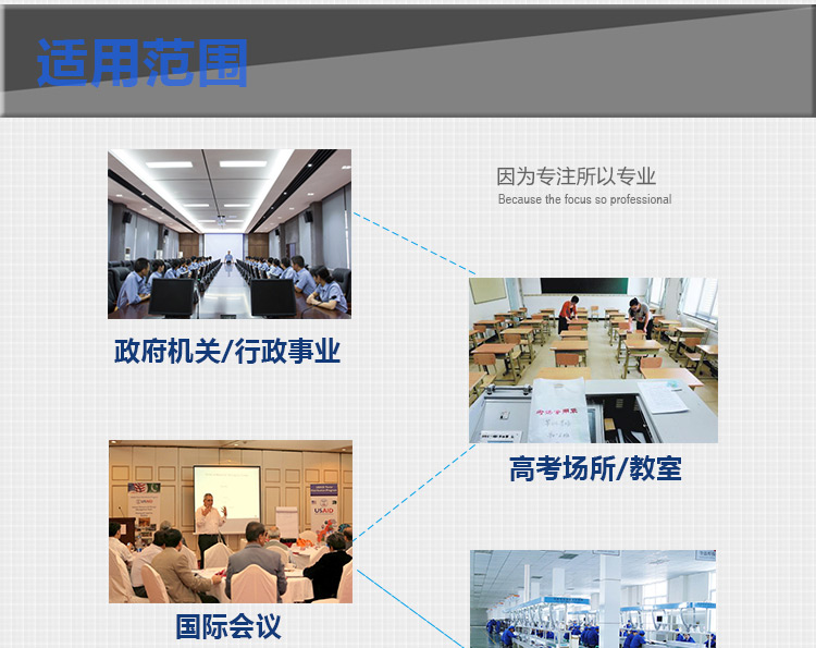 手機信號屏蔽器主要針對各類考場、學校、加油站、教堂、法庭、圖書館、會議中心(室)、影劇院、醫院、政府、金融、監獄、公安、軍事重地等禁止使用手機的場所。 據了解,現在市場上的手機信號屏蔽器可以限制自發射臺500M米以外的手機信號。屏蔽半徑可調,覆蓋范圍達到30㎡以上,手機信號屏蔽器僅僅只能屏蔽手機信號,而不對其它電子設備產生影響。節省電能,功率為12W--480W。